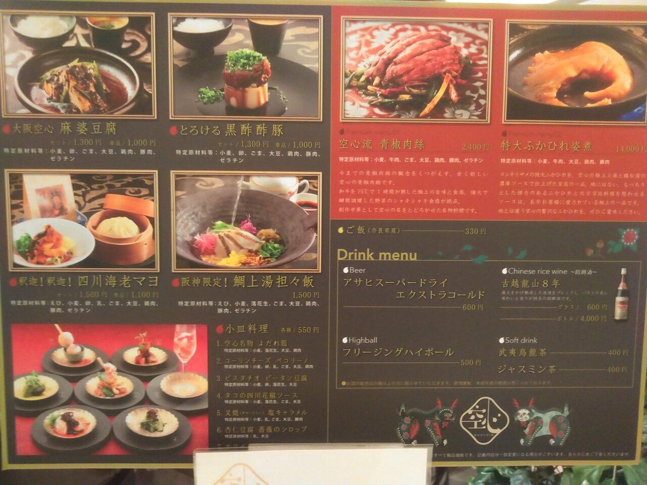 予約が取れないことでも有名ですが、現在、阪神百貨店9階のフードコーナーに、空心さんが入ったのです。ここならば麻婆豆腐が食べられる!