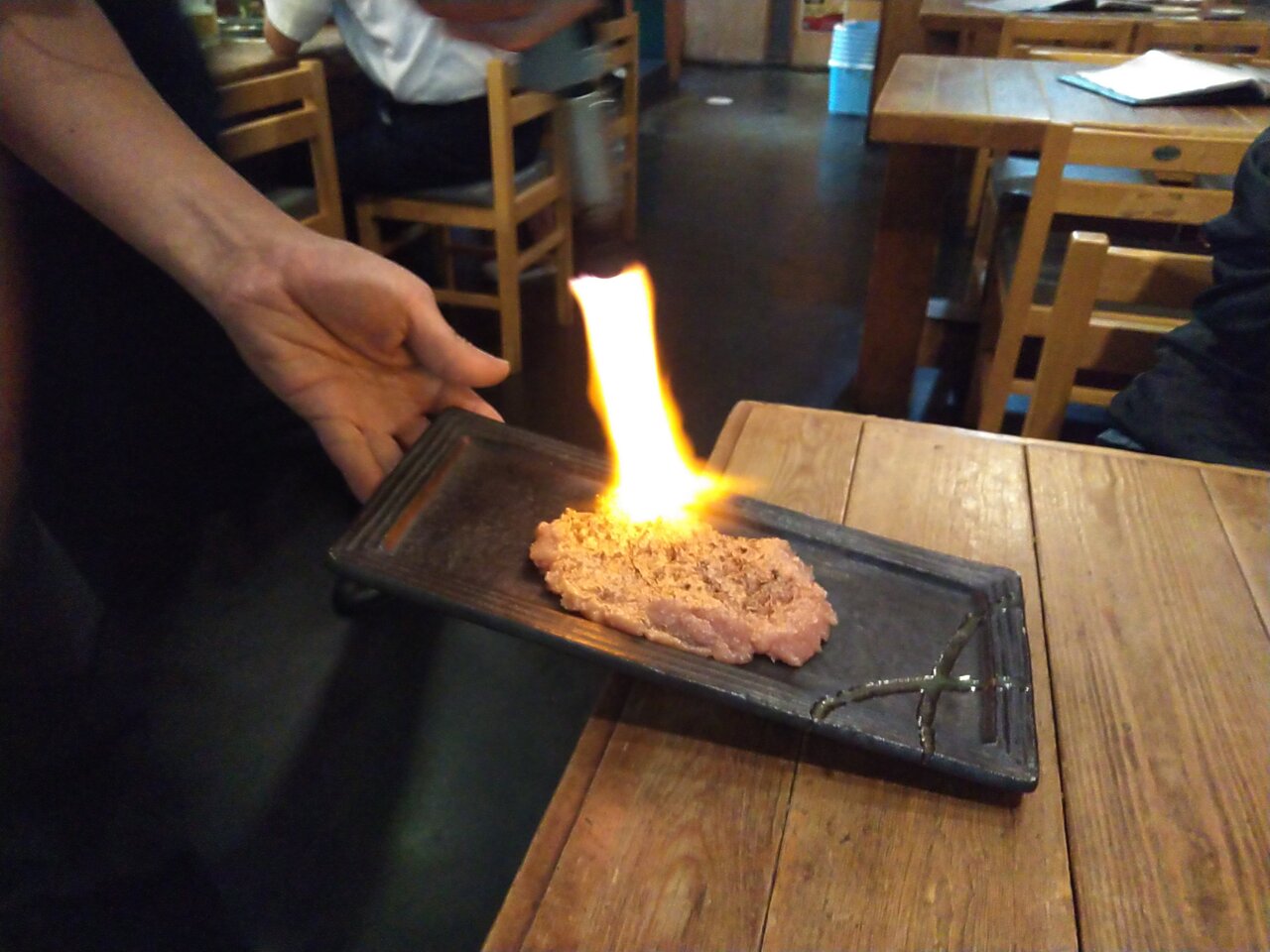 明太子をバーナーで炙ったのや刺し身の盛り合わせやらを頼みました。1リットルのビールがありました!アワアワがなくなる前に飲みきれへん!- 旅行時期