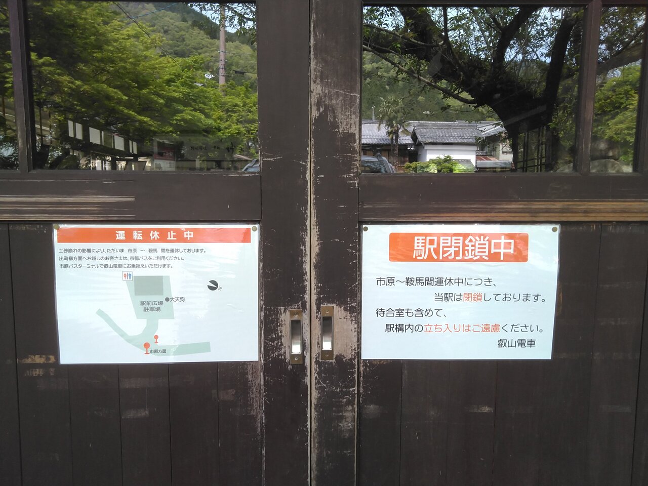 二ノ瀬駅と貴船口の間での土砂崩れのために、現在叡山電車は市原までしか動いていません。市原駅から案内板に従って5分もかからず貴船口や蔵馬に向かうバスの停留所につくことができます。貴船口駅はきれいになっていて、トイレもきれいです。鞍馬駅もトイレだけは使えます。