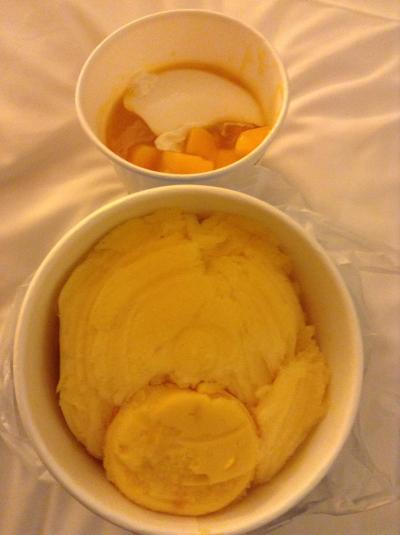 - 往路のデザートはハーゲンダッツのアイス!