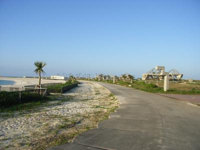 工事中のように大きな土の山があります。ビーチがあるから夏は賑やかなのだろうと思いますが、冬だったせいか、廃墟のような不思議な雰囲気を感じました。