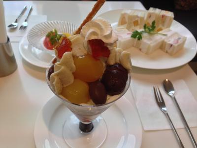 平日の15時頃に訪れました。ちょうどティータイムだったのもあるのか、結構混んでいました。少し待ってテーブルへ。季節のパフェが鮮やか。栗のパフェとフルーツサンドを注文しました。大ぶりな栗は味がしっかりしていて美味しかったです。