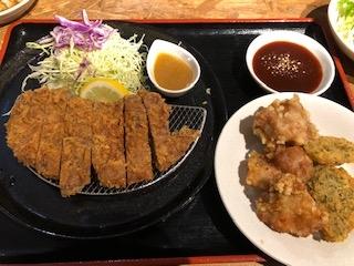 土日祝はランチもやっていて、焼肉ランチもあったけどとんかつランチを選んでみました。999円(税別)で唐揚げやカレー、サラダビュッフェ付きでボリュームがあります。トレーでとんかつとソースが運ばれてきて、ご飯はセルフで。ご飯やカレーや唐揚げが無い状態が多かったからちょっと気になったけど、コスパいいかなと思います。