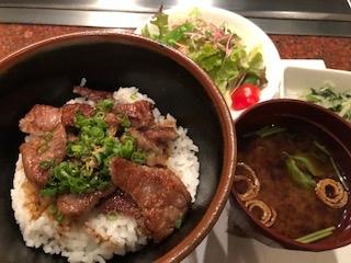 ランチを食べに行きました。数千円のコースが数種類と、ステーキ丼のランチメニューがあり、グランドメニューもオーダー可能だそう。一番お手頃なステーキ丼1,100円を注文しました。テーブルの鉄板で鮮やかに焼いてくれて見た目にも楽しいし、コスパがいいと思います。