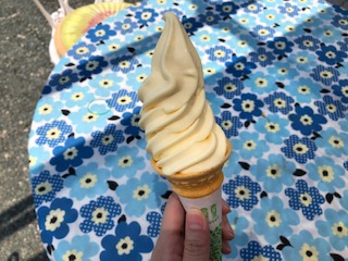 清見タンゴールソフトクリームがここでしか販売していないと店先に書いてありました。ソフトクリームというよりみかんのシャーベットのようで、さっぱりとしていて量が多いけど飽きずに食べることができました。愛媛のお土産も色々販売されていました。