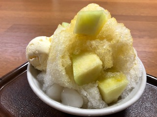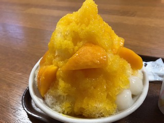 いちご大福が有名な和菓子屋さん、夏はかき氷をやっていると知り行ってきました。どのかき氷も希少糖が使われていて、桃のかき氷は桃がゴロゴロのって白玉、アイスクリームも付いていて1000円しないのでコスパが良いと思いました。数量限定20個の宮崎マンゴーは生じゃなく冷凍してあって食べるとかなりひんやり。フルーツ大福もたくさん販売されていて店内はお客さんでいっぱいでした。
