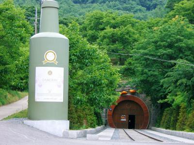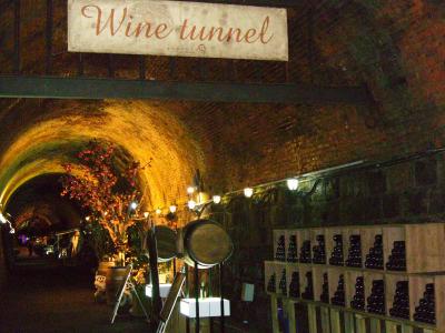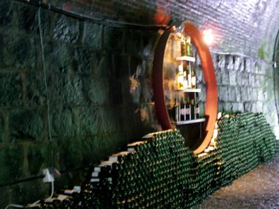 トンネル内で1〜2年熟成する。出荷を待っているワインか空瓶なのかは未確...