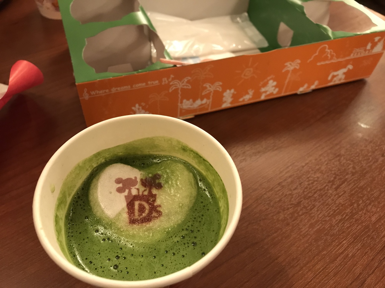 8時半の花火が始まるまで、ちょっと暖まろうと入ったカフェ。他のレストランはどこも行列してたけど、ここは食事メニューがないから、空いてました。抹茶ラテには、小豆とモナカか入っていて、甘くて暖かくて、癒しの味。