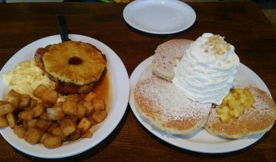 新しくコオリナにできたエッグスンシングスで、ブランチを食べました。2人用のコオリナ特製セットで、ポークチョップとパンケーキがたっぷり食べられました。パンケーキ、ふわふわで美味しかったです。ポークチョップも甘いパイナップルとよく合うお味でした。今度は夕食で行ってみたいです。