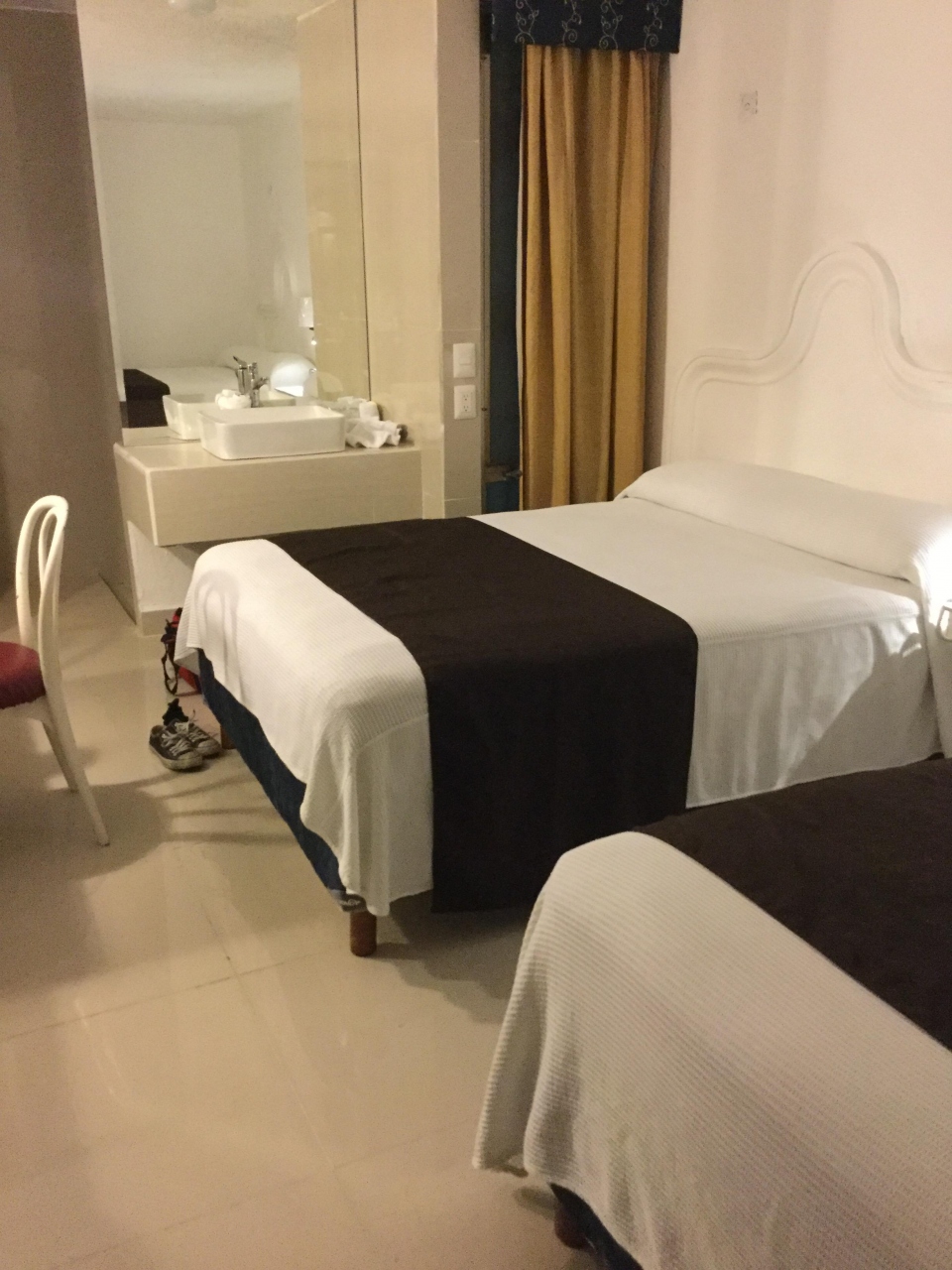 バスの遅延で飛行機に乗り遅れたので、急遽こちら宿泊。バスターミナルの目の前というロケーションのわりには、価格が抑えめで良かったです。部屋は明るくて清潔。ただ、工事の音が響いてうるさかったです。メルカド28へも歩いて行けて、とても便利。