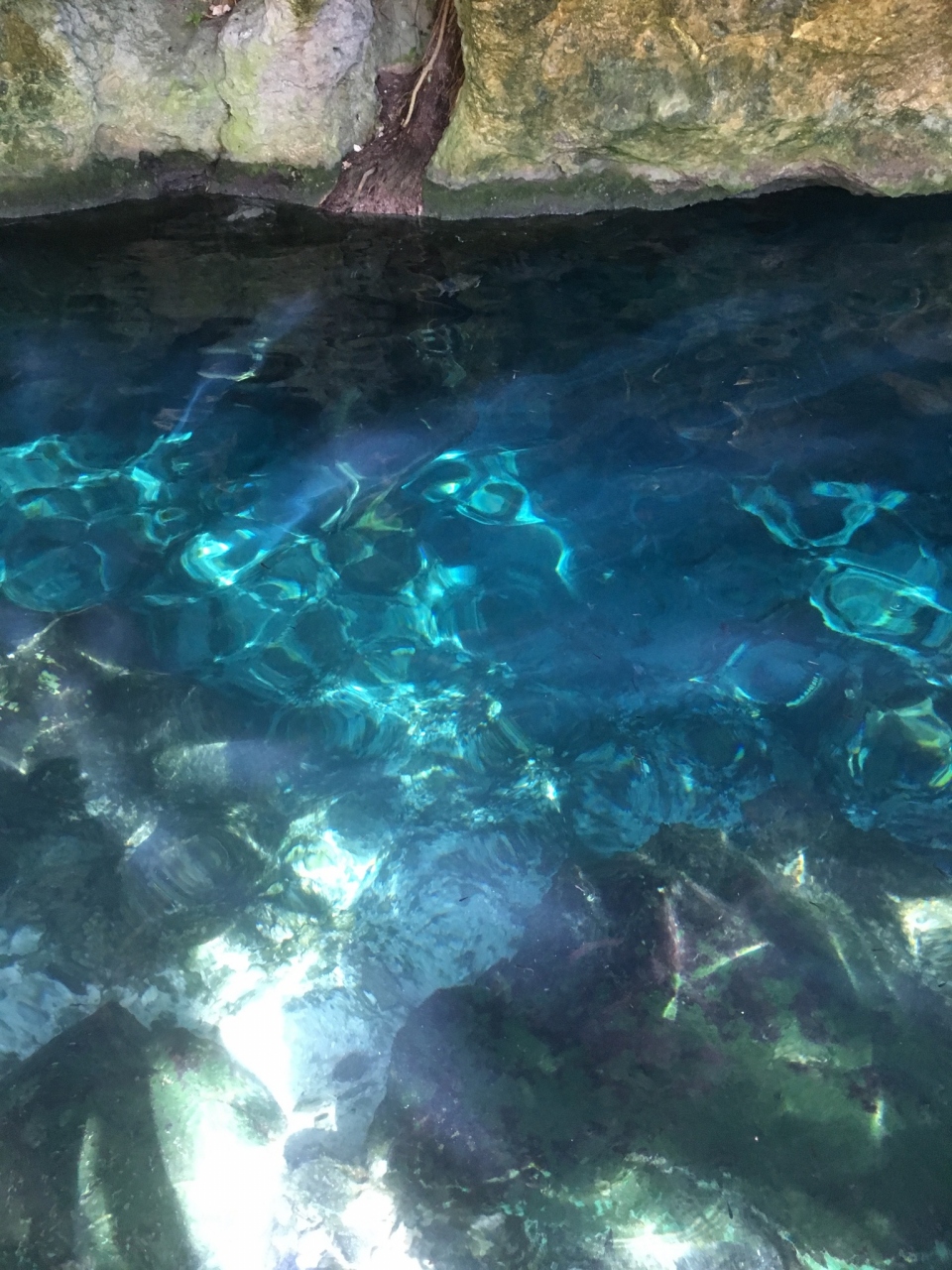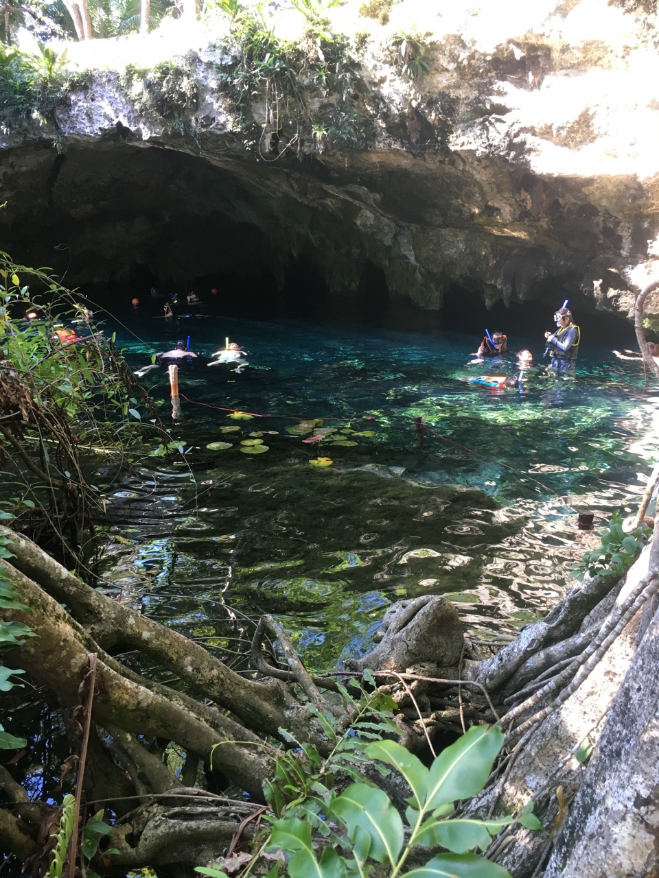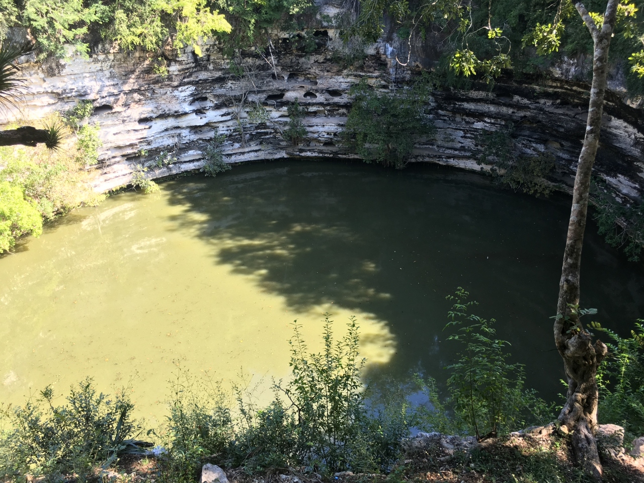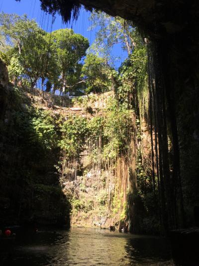 ユカタン半島に数多いセノーテの中でも、深い縦穴が特徴的なセノーテ。朝イチで行くと観光客が少ないので、秘境気分が味わえます。水は濁っているので、深さを感じません。水面にナマズのような魚がいっぱいいます。昼近くになると、縦穴に日が差して来ます。