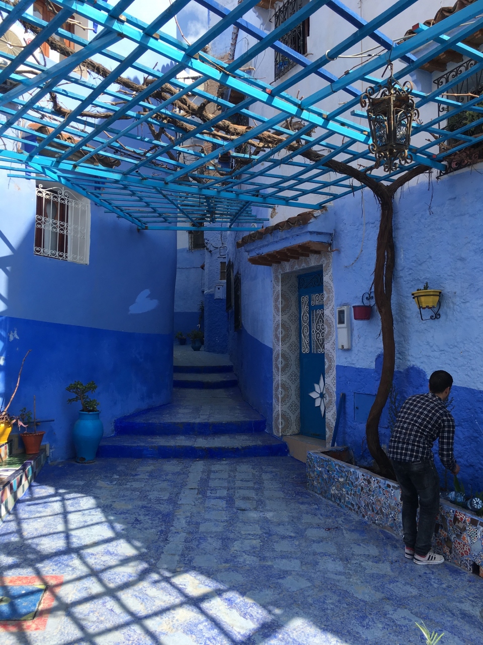 リフ山脈の山肌にぺったりと張り付いた青い町のメディナ。細い路地と階段が連なっており、散策して足腰が鍛えられた気がします。濃い青から薄い水色まで様々な青色があり、どの路地もフォトジェニック。青い色になったのは1930年くらいからだそう。意外に新しい。