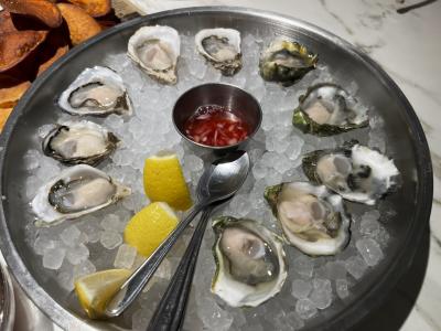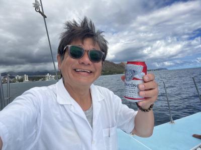 ハイアットセントリックワイキキビーチの一階のかきバーでウエイティング