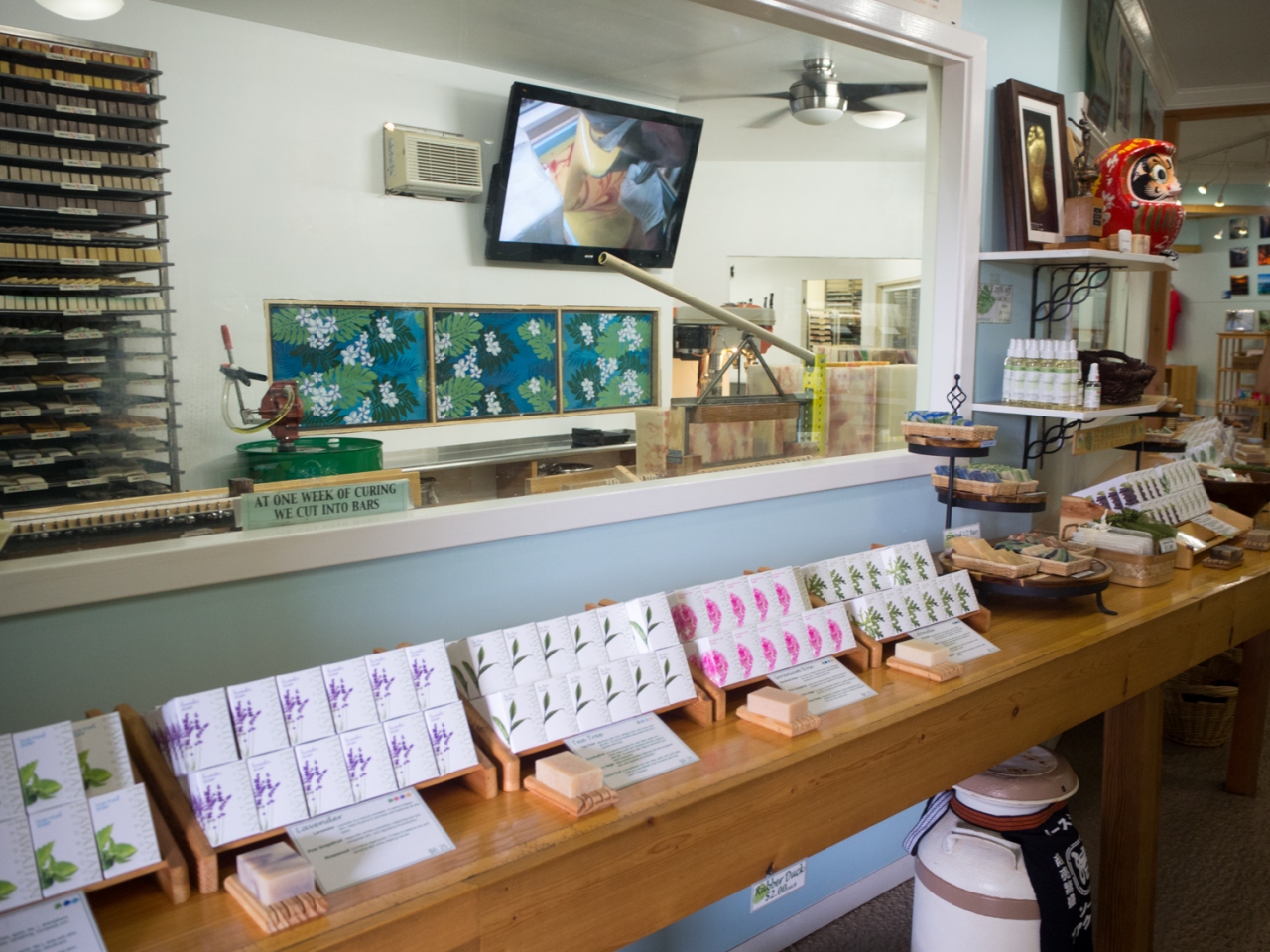 テレビでおサマーズが紹介してたところです。ノースショアへのドライブに立ち寄るポイントとして、すごく良いとおもいます。ハワイって石鹸のおみやげが多いですが、女の人は楽しいのかな!コーヒー豆のショップやグッズのお土産やさんもありました。