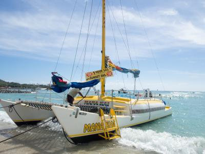 ワイキキビーチの前のマヌカイカタマランは最少人数6人くらいから出航してくれるみてたいです。何度か乗ってるのですが、お客がいないとちょっとまってねと言われました。ビーチで待ってたら。飲み物とか持ち込み大丈夫だよと声かけてくれたので、ABCストアでビール買って乗り込みました!シェラトンのマイタイカタマランよりはスピードでないけど、マイタイカタマランに乗れなくてもこっちにくれば時間差で乗れます!