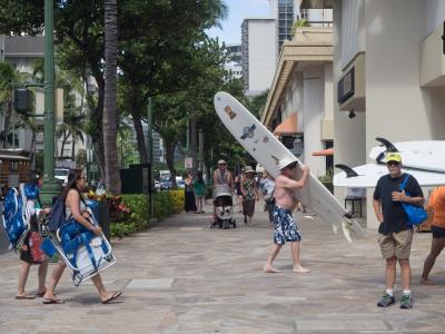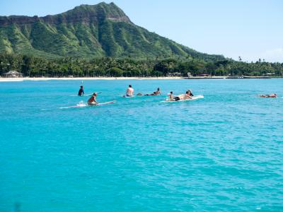 - ワイキキビーチを歩いてこられます