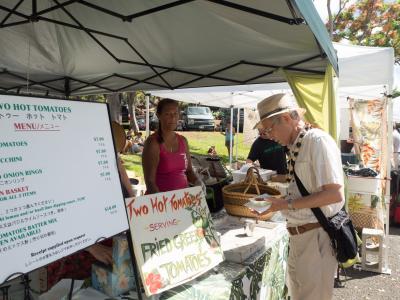 土曜の朝から皆でKCCファーマーズマーケットに言ってきました。フライドトマトやジンジャエールも全然並んでなくて、人はいっぱいなのにすごく快適でした。6月は日本の人が少ないみたいで白人系の人が多くいました。シャワーツリーや植物がすごくきれいで、青空のもと木に花がいっぱい咲いてるのは本当に壮観でした。