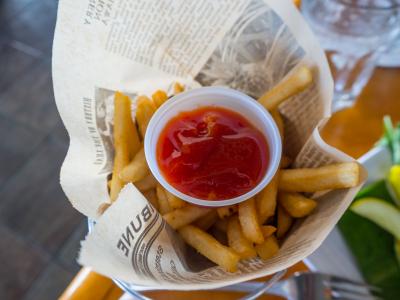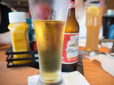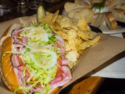 ハンバーガーとポテトとビール!ブルーチーズのバーガーもおいしいですが今回はしっとりオニオンの乗ったバーガー、オニオンが甘くて美味しかった。- 旅行時期