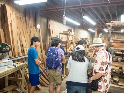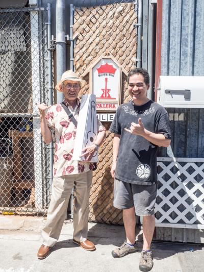 お父さんがとても楽しみにしていたウクレレ工場見学です。この日はアメリカ人の家族とわれわれ日本人の家族の二組がいました。とても丁寧にウクレレの作り方を紹介していただき、とても楽しかったです。近くにカメハメハベーカリーがあり、ちょうど立ち寄ることができました。時間は1時と3時からで、予約は無しで大丈夫です。前もってメールで問合せも丁寧にこたえてくれました。
