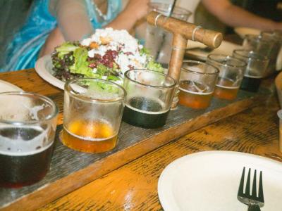 ハロウインに行く前にご飯を食べに行きました。アラモアナからちょっと行ったところにあるワード地区のビアガーデンです。自分ちでも、ビール作ってるみたいでした。地ビールは何を頼んでいいかわからないので5種類テイスティングできるコースを選んでそれから、注文すると楽しいです!