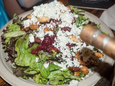 サイドメニューが多くてみんなでシェアしました。大人5人でワインとビール飲んで550ドルくらいでした。プライムタイムでも100ドルはかかりますね。- 旅行時期