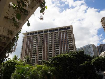 ヒルトングランドバケーションクラブのラグーンタワーです。ワイキキアンもいいですが、私はこのラグーンタワーが好きです。工事も終わり快適でした。10階の部屋からの眺めもなかなかグッドでした。