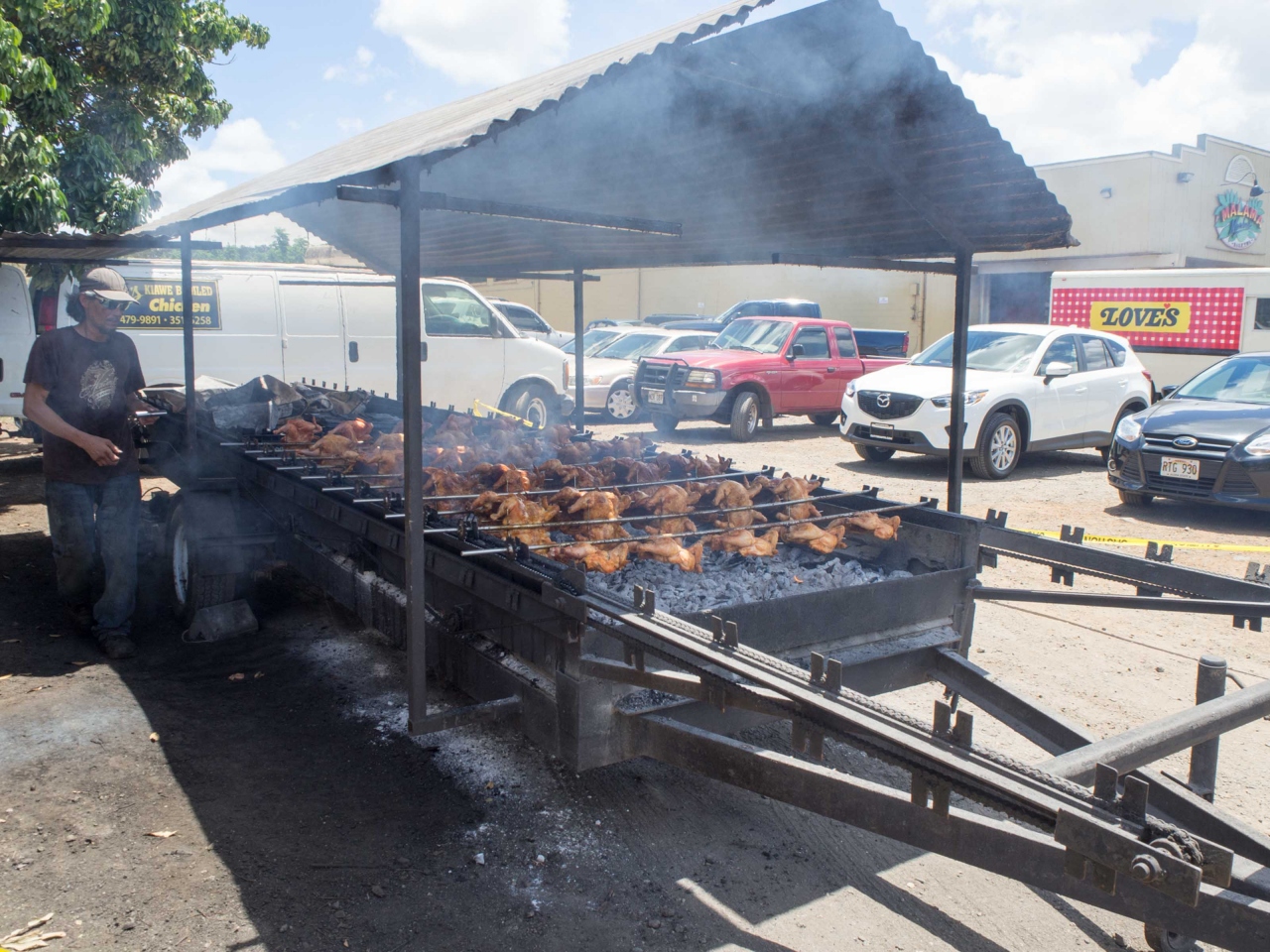 けっこうダイナミックに煙りがあがっていて 炭火100パーでしかもおじさん素手で熱そうな炭触ってるし、おもわず買ってしまいました。ビーチで食べて美味しかったです。ハーフで6ドル 一羽10ドル なんかソースとかオプションありました。- 旅行時期