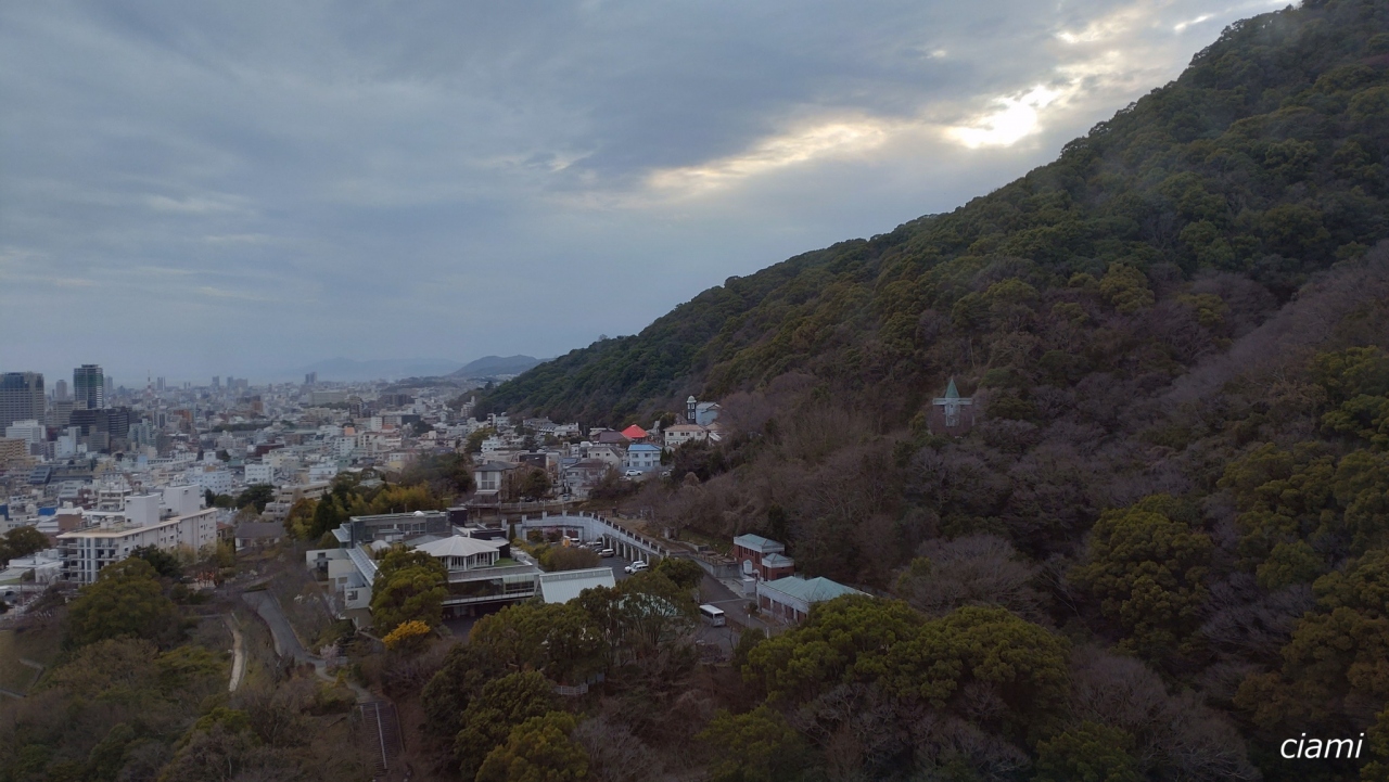部屋の窓から、山、神戸の街、ビルの隙間から、遠くに海も見えます。
