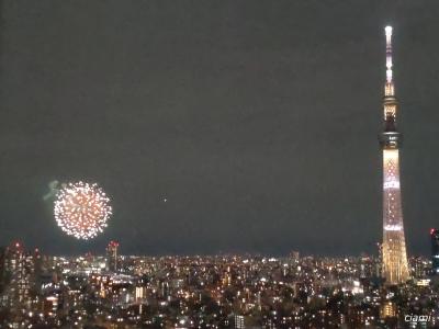 部屋から、スカイツリーと花火が見えるというので、隅田川花火大会にあわせて泊まってきました。