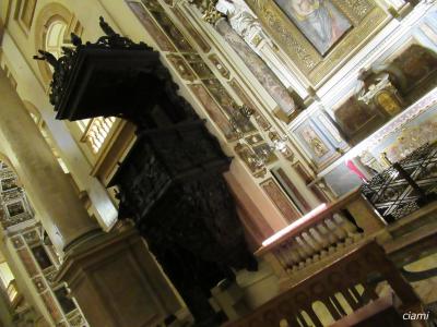 中に入ると、正面の主祭壇の祭壇画に光が当たって、自然に目が行きます。