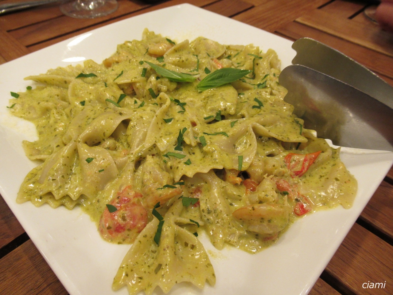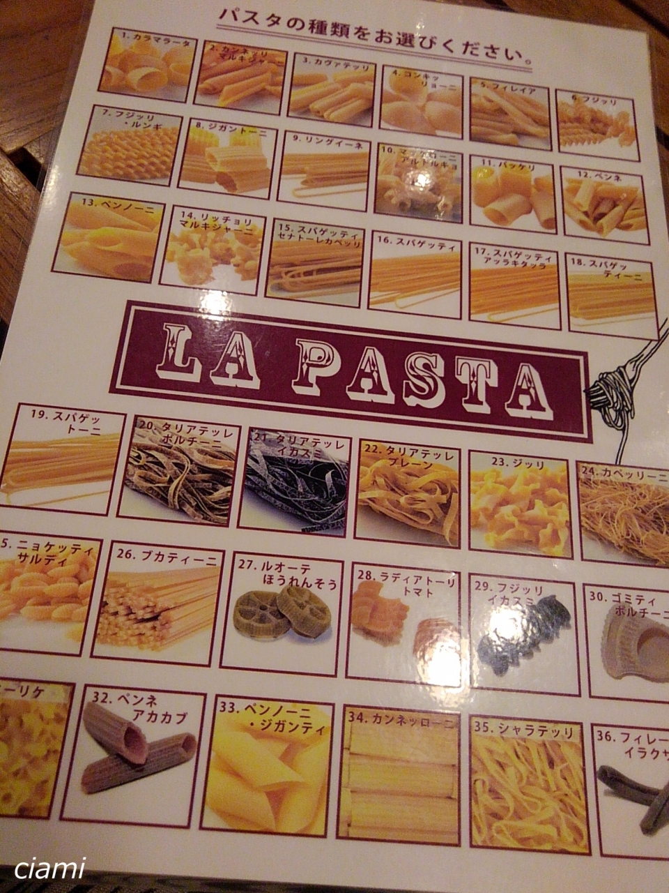 壁にたくさんの種類のパスタが飾ってあって、興味があれば、近くにある系列店の