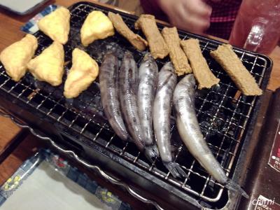 魚とか貝とか、自分で焼いて食べるタイプのお店です。