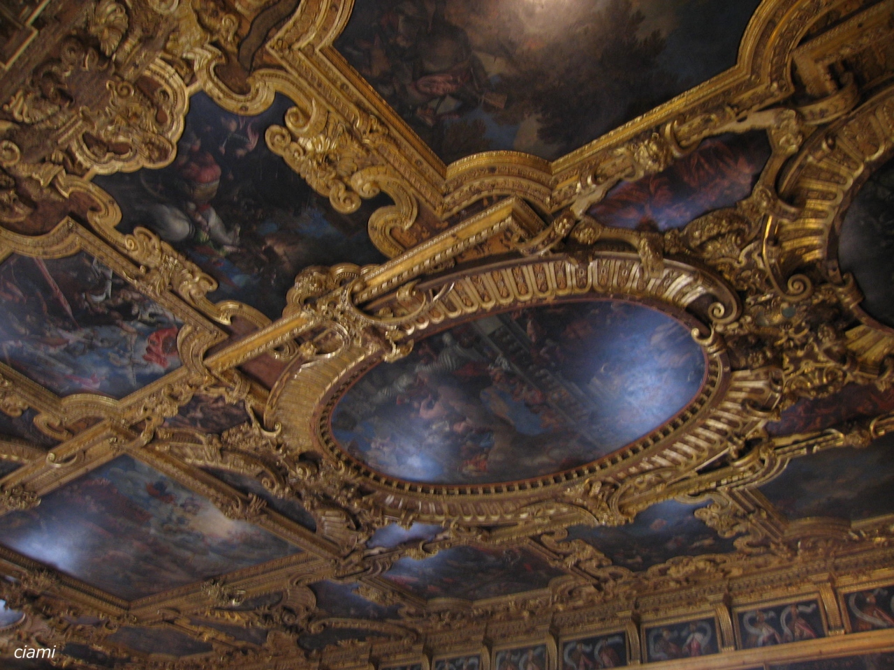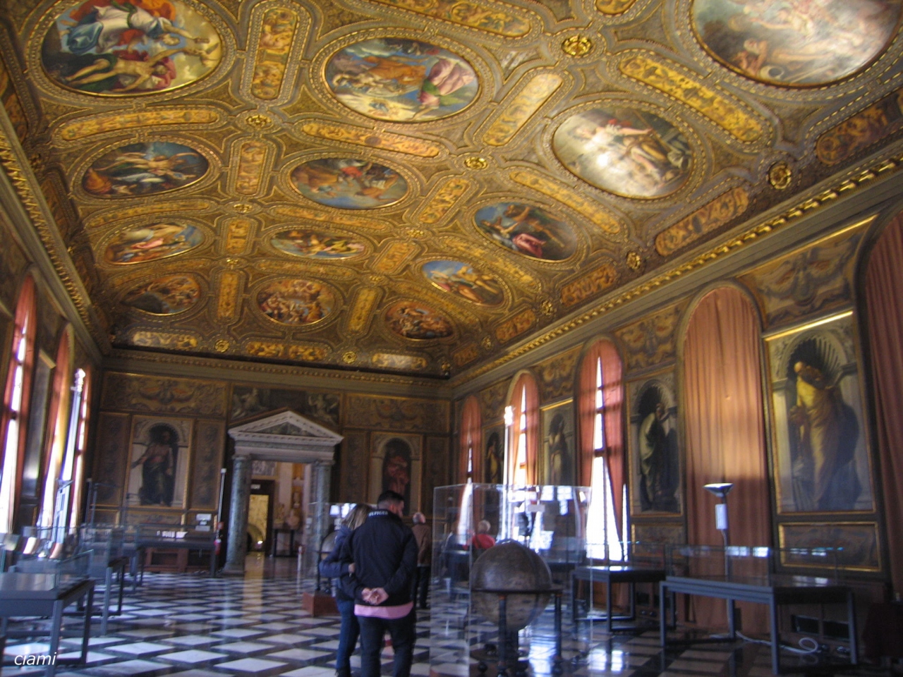回廊にあるその入口も石像などあって立派ですが、ヴェロネーゼなどヴェネツィアの画家が描いた天井画が見られるサンソヴィーノの大広間は、コッレール博物館から入ります。