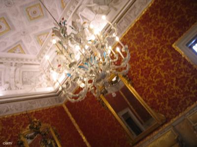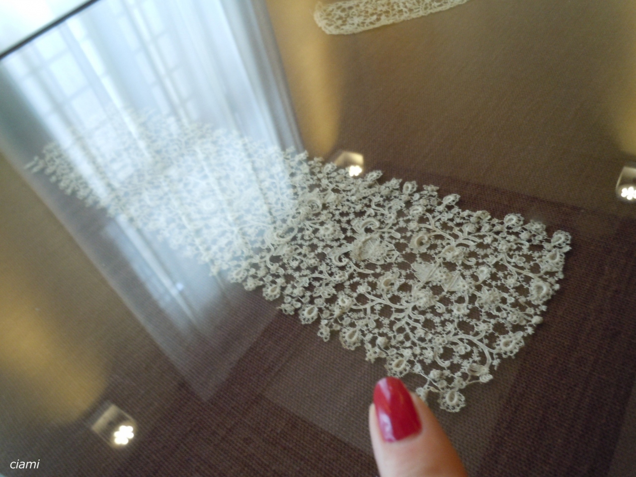 ヴェネツィアングラスのシャンデリアや、食器、ブラーノのレース、織物や刺繍など、何気なく置いてあるもの全部、ヴェネツィアの貴重な伝統工芸品です。
