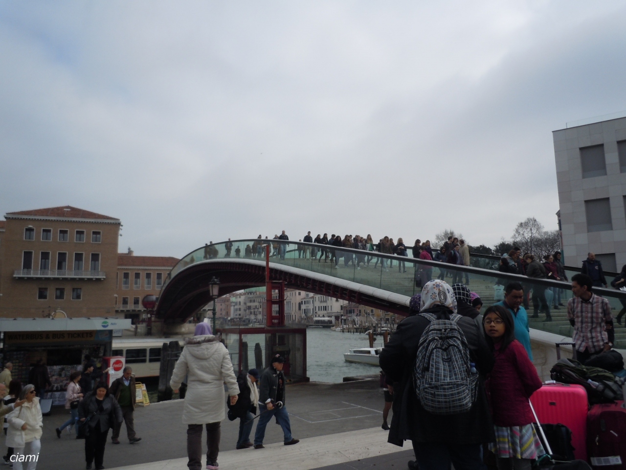 バスやトラムでローマ広場に着いた人が、サンタ・ルチア駅に行くのには、橋ができて近道になりました。