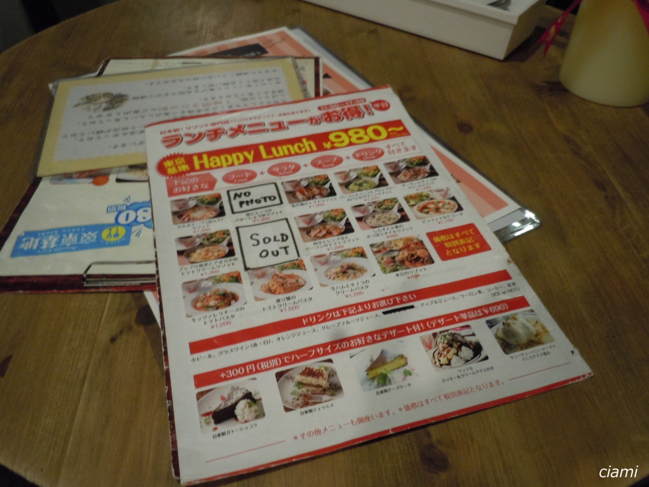 ランチ980円からで、リゾット10種類以上あって、サラダとスープとドリンクが付きます。