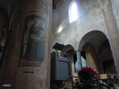色があせたりはがれかけたりしたフレスコ画がいっぱいで、特に柱に残ったマリア様がいい感じです。- 旅行時期