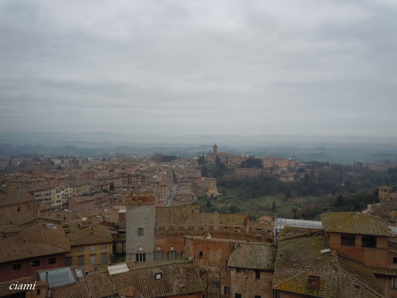 サン・ドメニコの向こうに広がる冬のシエナは、墨絵のようで、一見の価値があります。- 旅行時期
