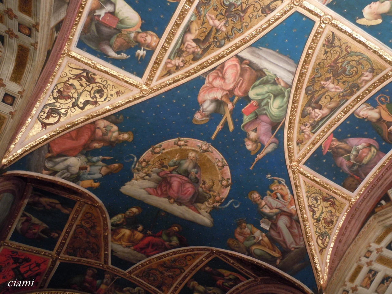 ラッファエッロの師匠、ペルジーノのフレスコ画で埋め尽くされています。