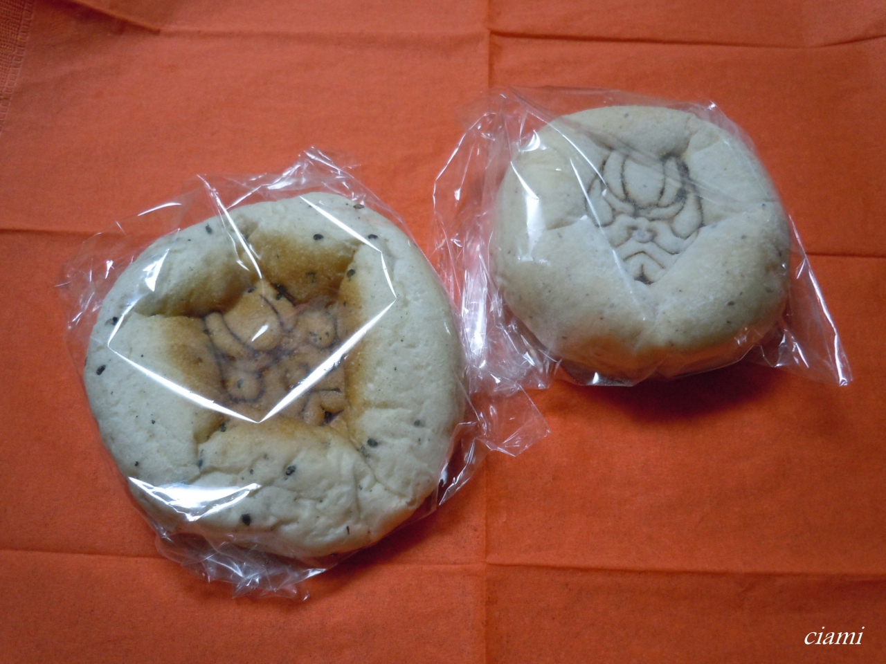 見つけてしまって、どうしても買いたくなっちゃったのが、隈取りの焼きイン入った餡パンです。