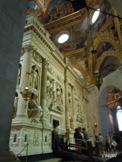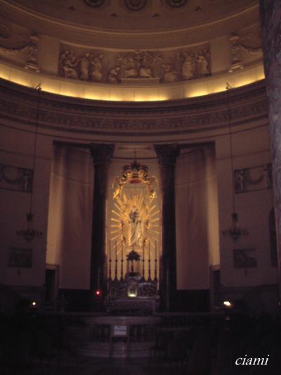 入口の上のレリーフも、祭壇画も、うちの上にマリア様がキリスト抱いて乗ってます。- 旅行時期