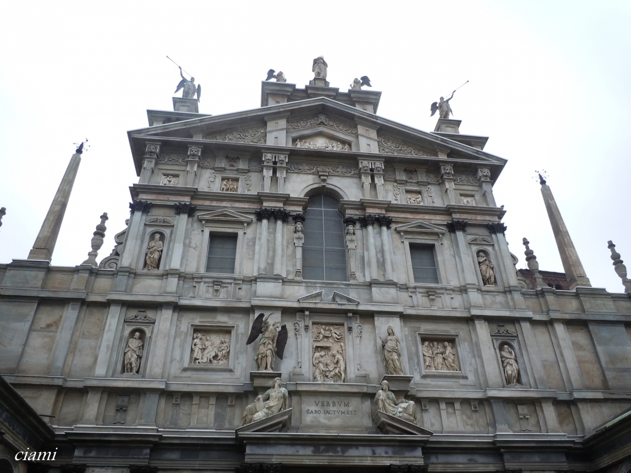 教会の正面を飾る、聖書の場面を表した浮き彫りや、たくさんの天使も見所です。