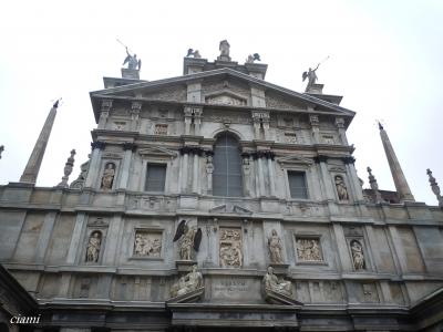 キリスト教を迫害していたマッシミリ帝の命令で、聖アレッサンドロが投獄されていた場所に建てられたという教会で、2つの鐘楼が印象的です。