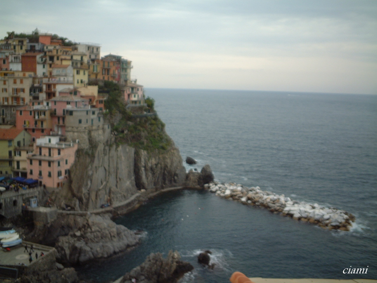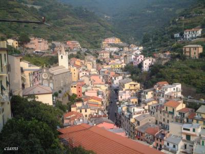 港から、海を背にして左側の坂道をず?っと上がっていくと、お墓があります。このお墓の前から見るマナローラの景色が一押しです。