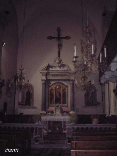 村の守護聖人の洗礼者ヨハネを祀った教会で、入口の上はフレスコ画はヨハネがキリストを洗礼している場面で飾られています。