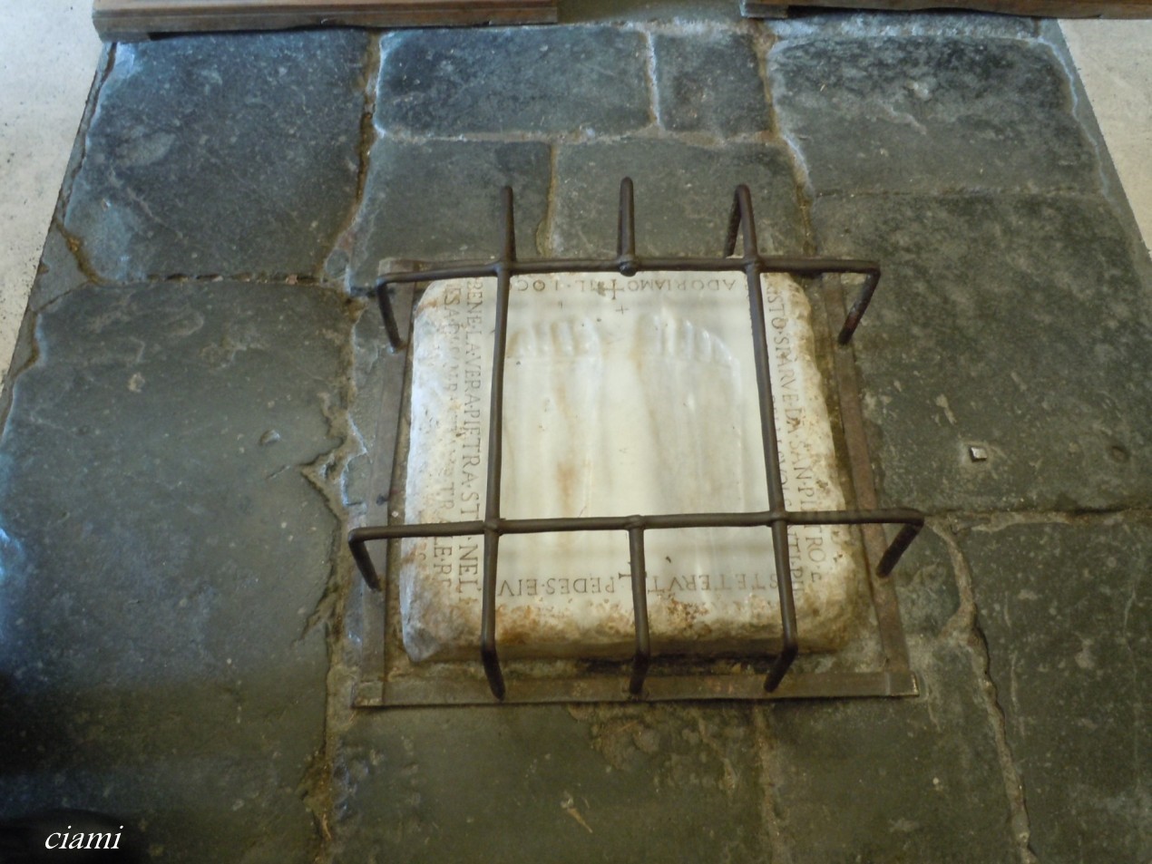 足跡は、右手の最初の礼拝堂に、しっかり鍵がかかってしまってあります。