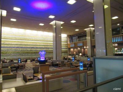 フロントの向いのラウンジで、席数も多く、吹き抜けで、落ちついた雰囲気です。
