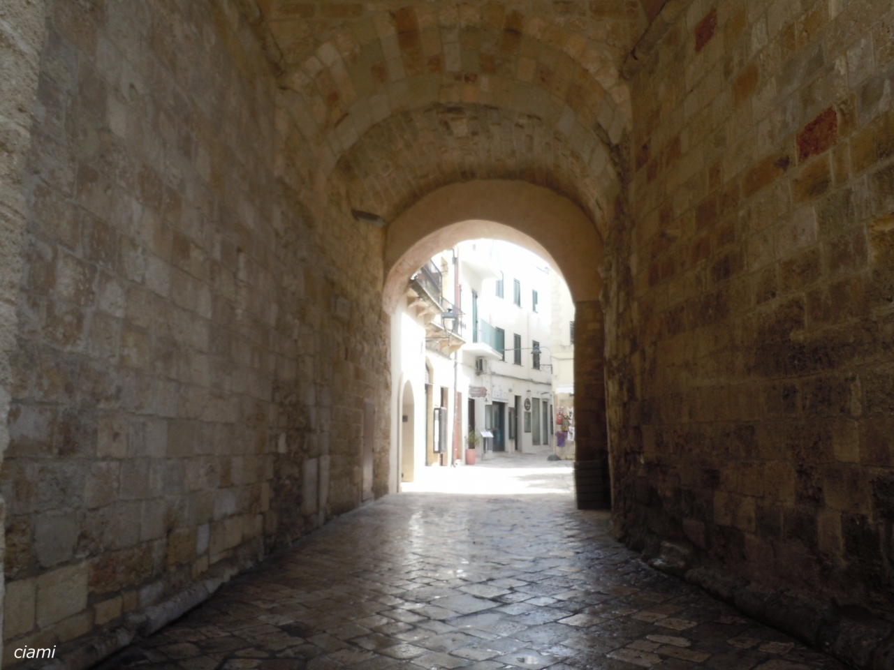 大聖堂前のバジリカ広場とアラゴン城を結ぶ通りで、ディオチェザーノ博物館の左側から続く、石畳の細い道です。