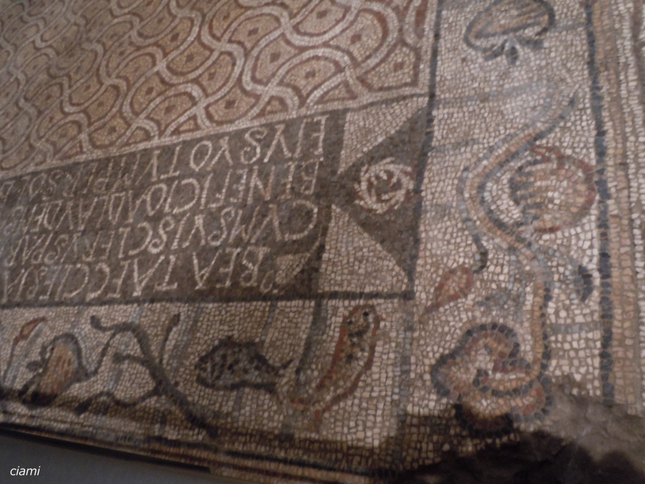 遺跡を残すため、劇場全体を持ち上げて建てたそうで、全体ちょっと薄暗い感じです。