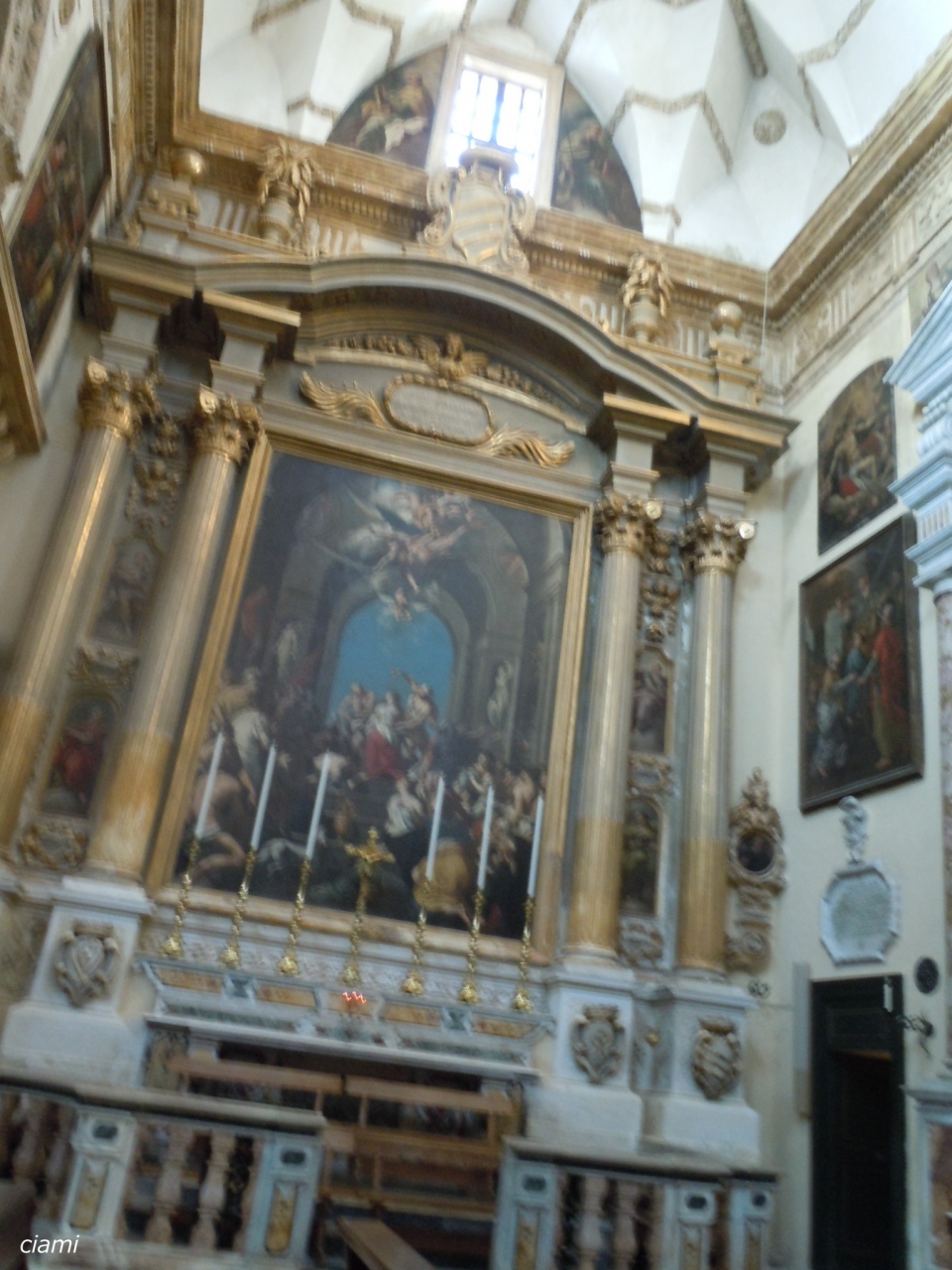 ガッリーポリの街の守護聖人、サンタ・アガタを祀った聖堂と言うことで、礼拝堂の祭壇や天井にサンタ・アガタにまつわる絵画が使われています。